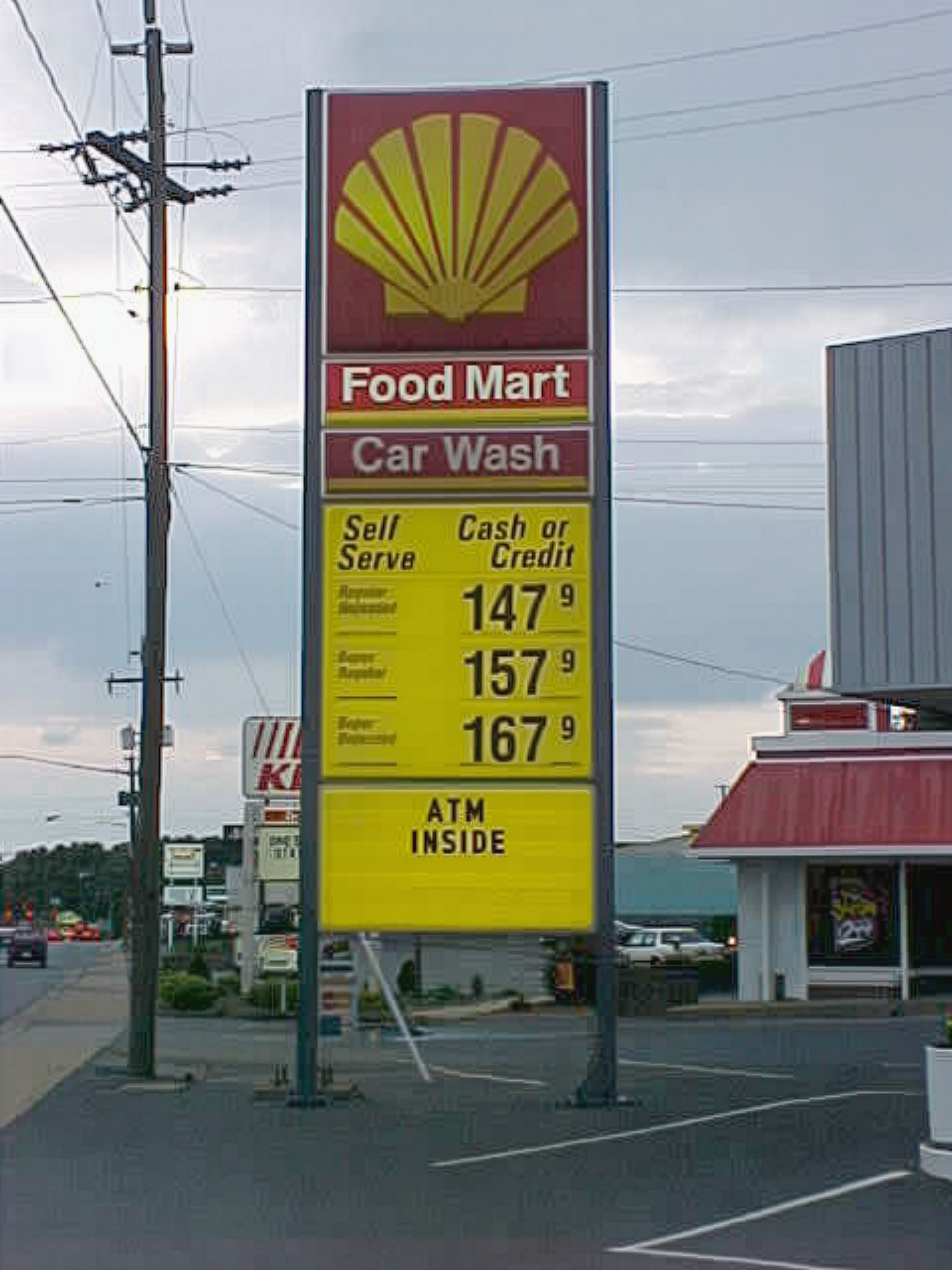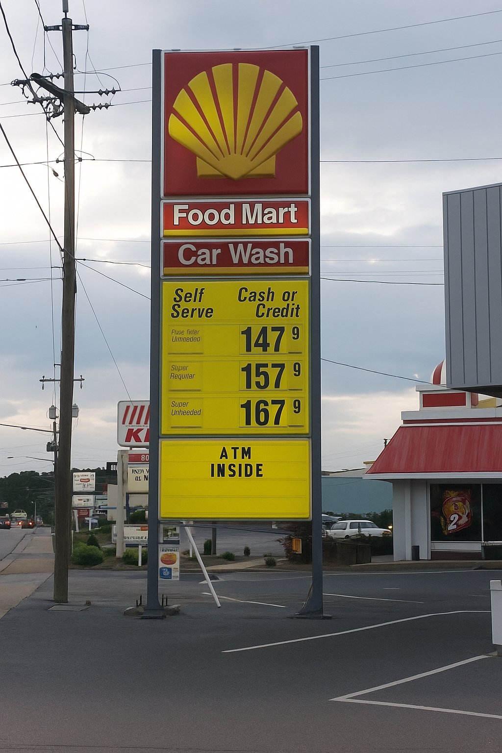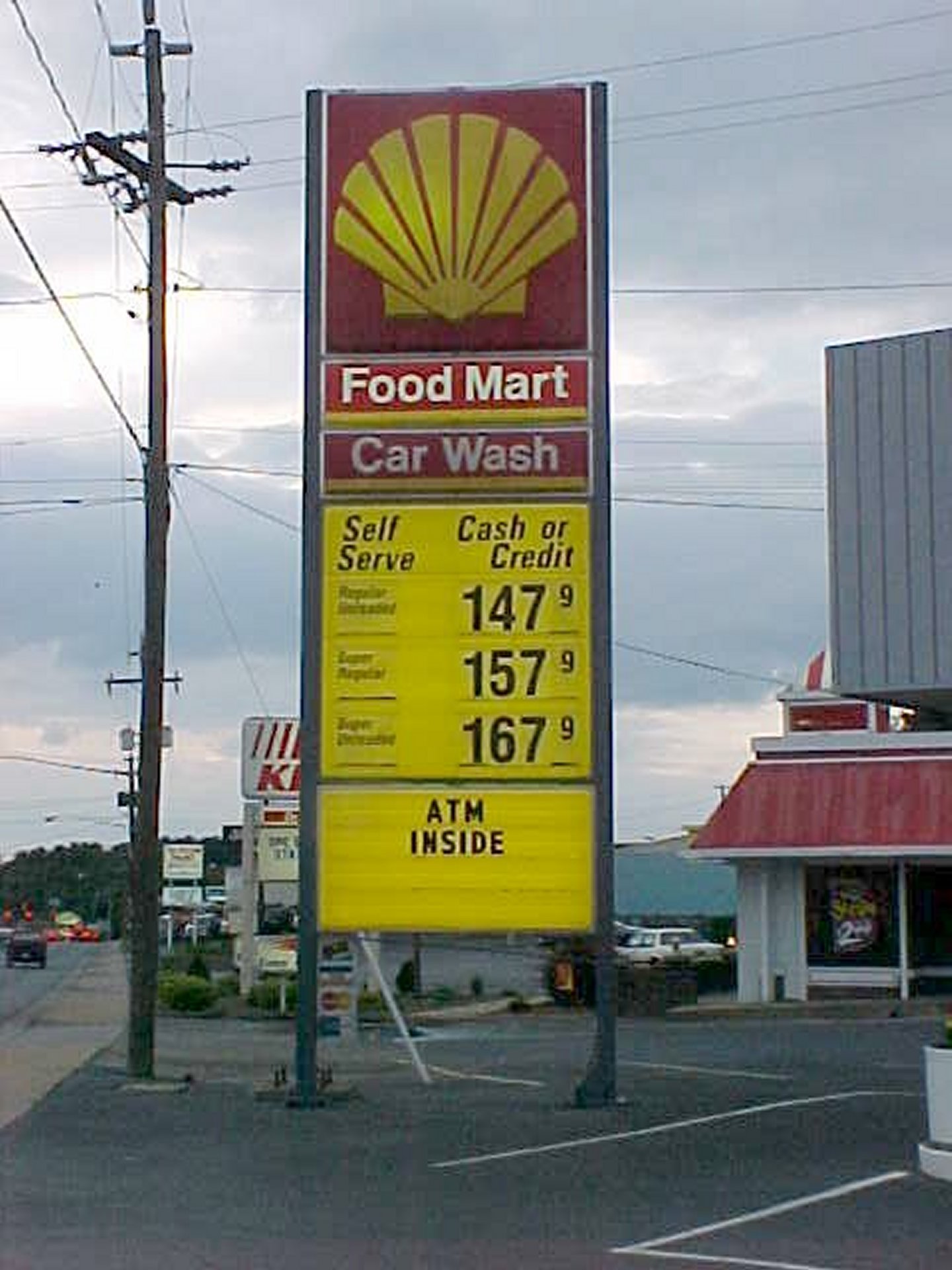 I took this photo on June 3, 2001, and it shows the price sign at the Shell gas station on Greenville Avenue in Staunton, Virginia. This was taken along with a bunch of other gas price signs in the Staunton area with the intention of using them for a quote article about gas prices in July 2001, but for whatever reason, I chose not to use this one. The quote article is kind of idiotic, and can be summed up as “Schumin is a cheapskate and doesn’t have a good understanding of what goes behind pricing decisions.”