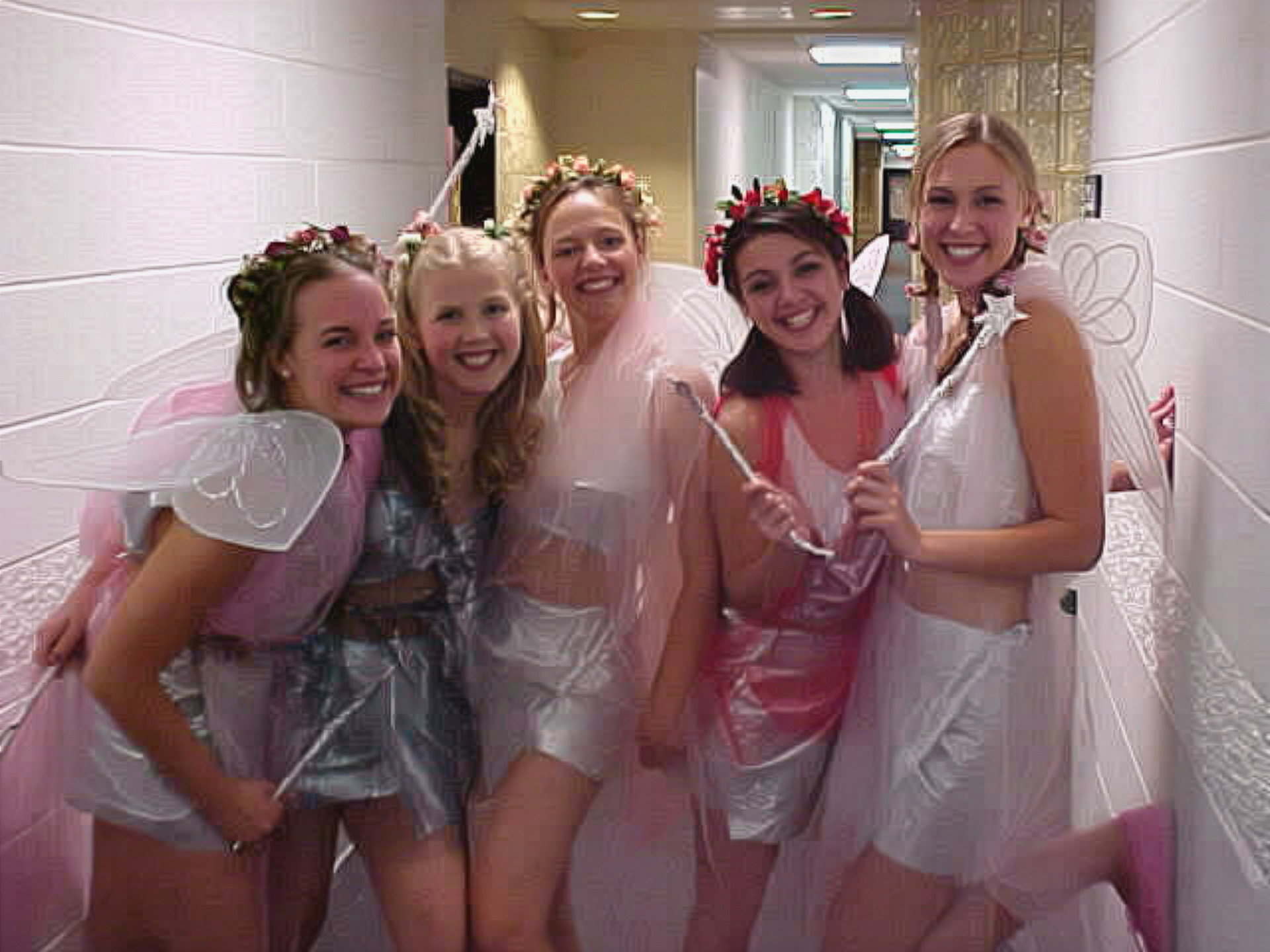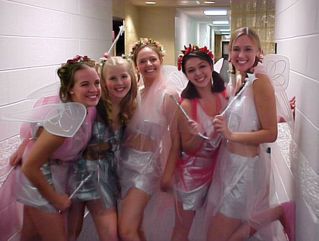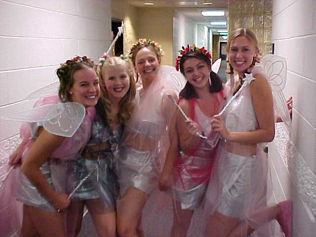 I took this photo on October 28, 2000, and ran it twice in rather quick succession. The first instance was with a quote article, and then the second was on the Halloween page for sophomore year in College Life. It shows five girls dressed as fairies, standing in Potomac Hall before going out to party.