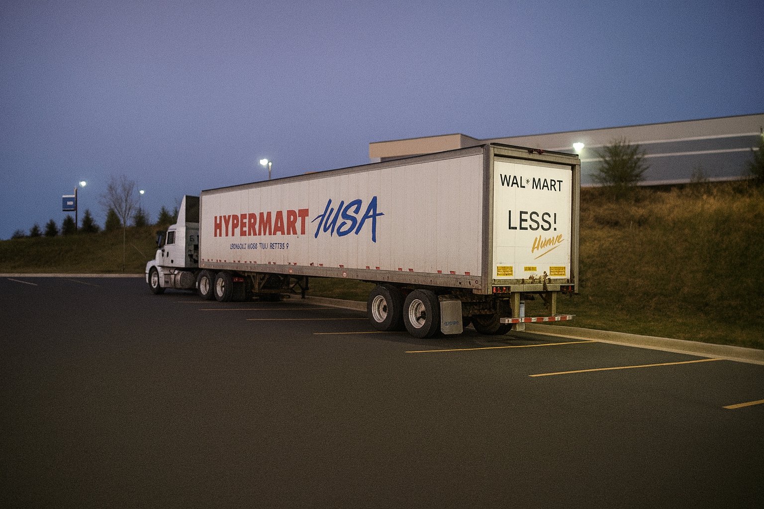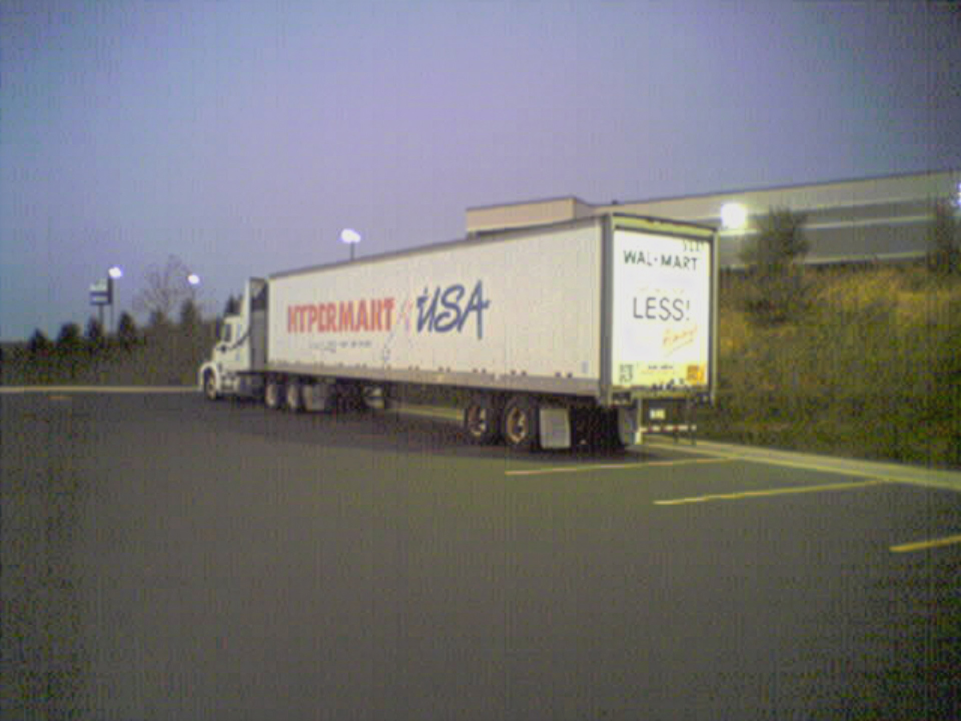 This is a Hypermart USA truck, photographed at the Walmart store where I used to work at in the early morning of October 1, 2005. For those not familiar, Hypermart USA was a concept store operated by Walmart as an early attempt to combine a Walmart discount store with a grocery store. Walmart ultimately passed on expanding the concept beyond the initial four stores, likely because it was too much at once for the shopping public. The company ultimately added groceries to their offerings via the Walmart Supercenter concept. This photo originally ran in the Year in Review photo set.