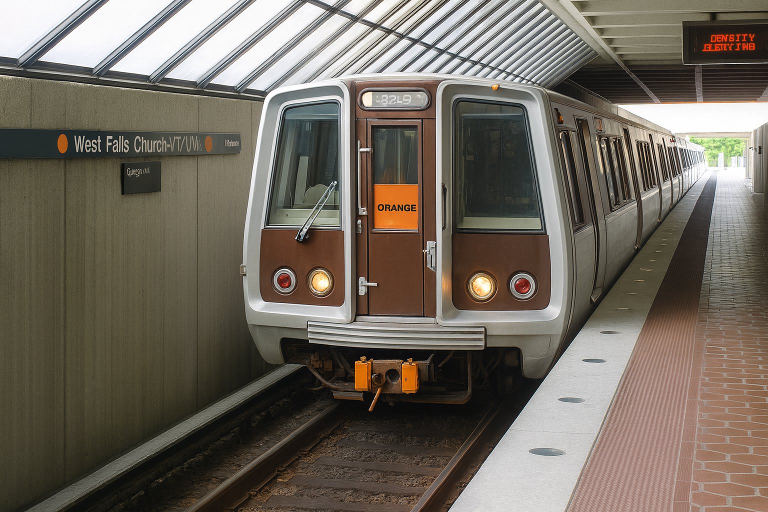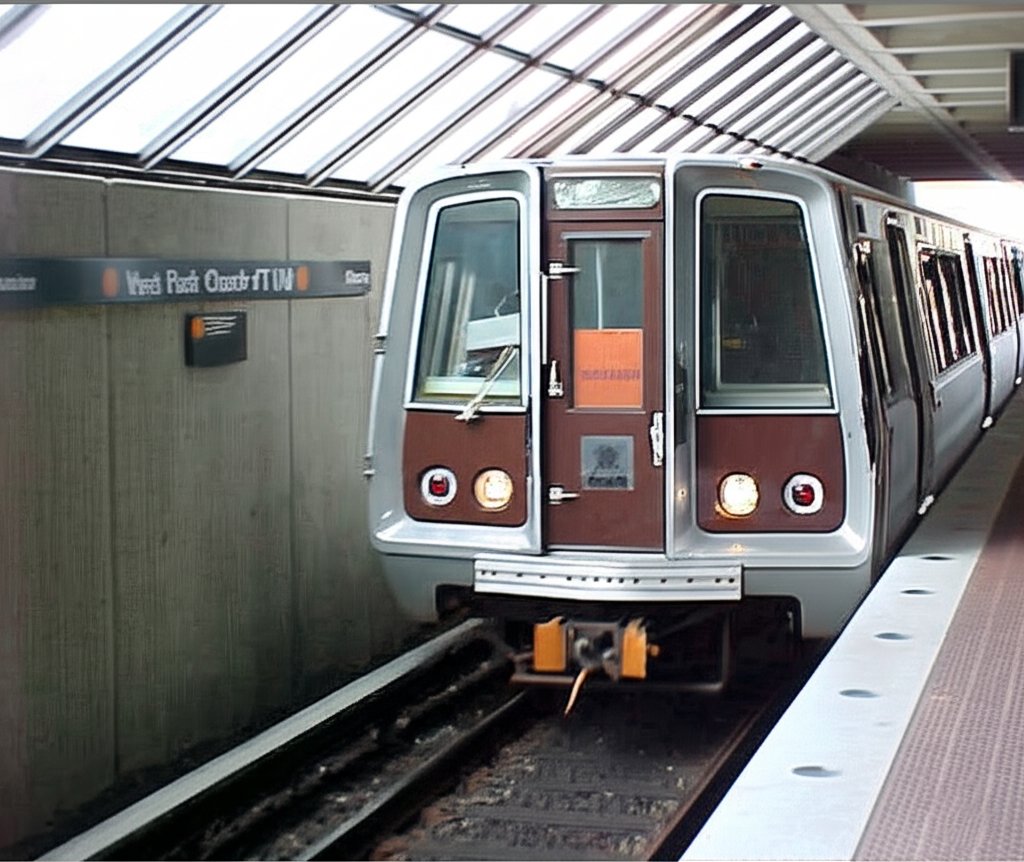 And of course, ChatGPT, ever the overachiever, produced a pretty smooth image. No graininess, very smooth lines, and the text is… okay. It also makes a few mistakes on the details that don’t exist on the control image. The frames around the cab windows are the wrong color, because unlike the other car series, they were not black. Likewise, it took a few liberties with the bulkhead door compared to the original photo. As far as text goes, it filled in the head sign, displaying “32L9” on it. The wall sign is largely legible, except for the “A” in “UVA”, so not bad there. It also got the bulkhead door sign correct. The PIDS, however, which should read “ORANGE LINE VIENNA/FAIRFAX”, starts out with “DENSITY”, which is rather creative.