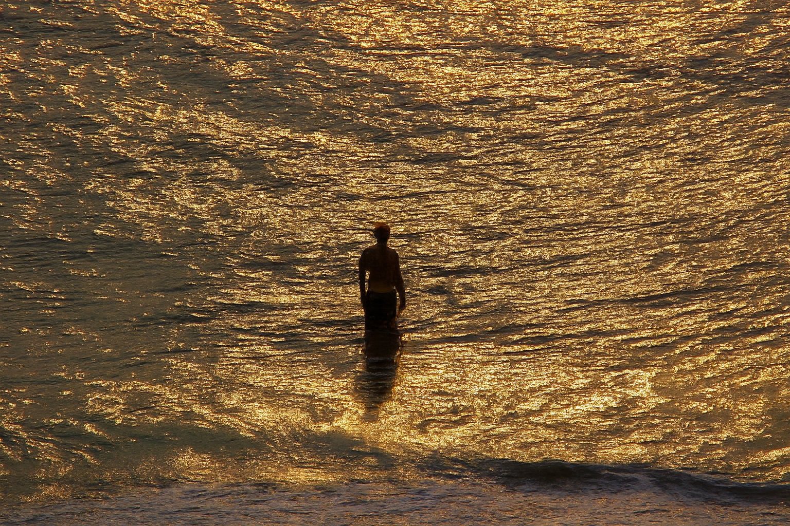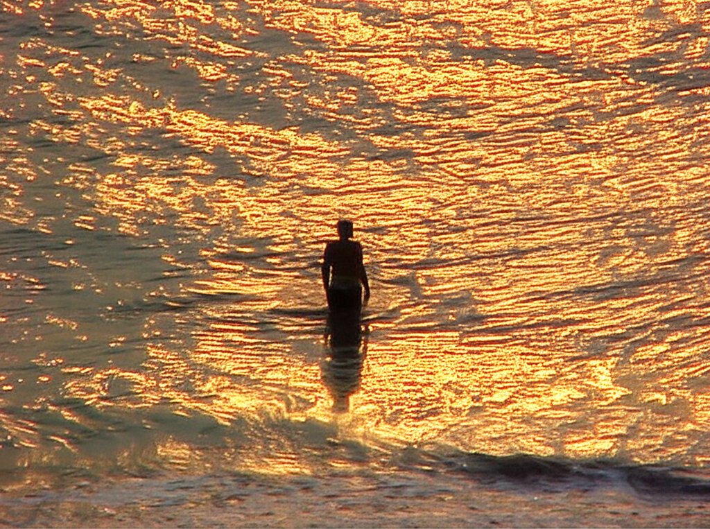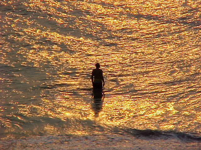I shot this image from the balcony of the Ocean Holiday hotel in Virginia Beach in the early morning on August 8, 2000, and it appears in the Sunrise at Virginia Beach photo set. Looking back at this old set now, as well as my later attempt in 2004 called Atlantic Sunrise, I am not particularly thrilled by either set as a whole, though each has a few individual shots that I like. This one, showing a man playing in the surf, has always been a favorite. I’ve said before that if I ever tried my hand at painting, that I would try to paint this photo.