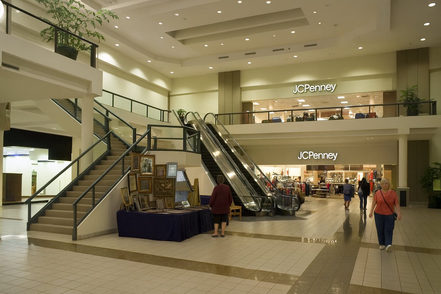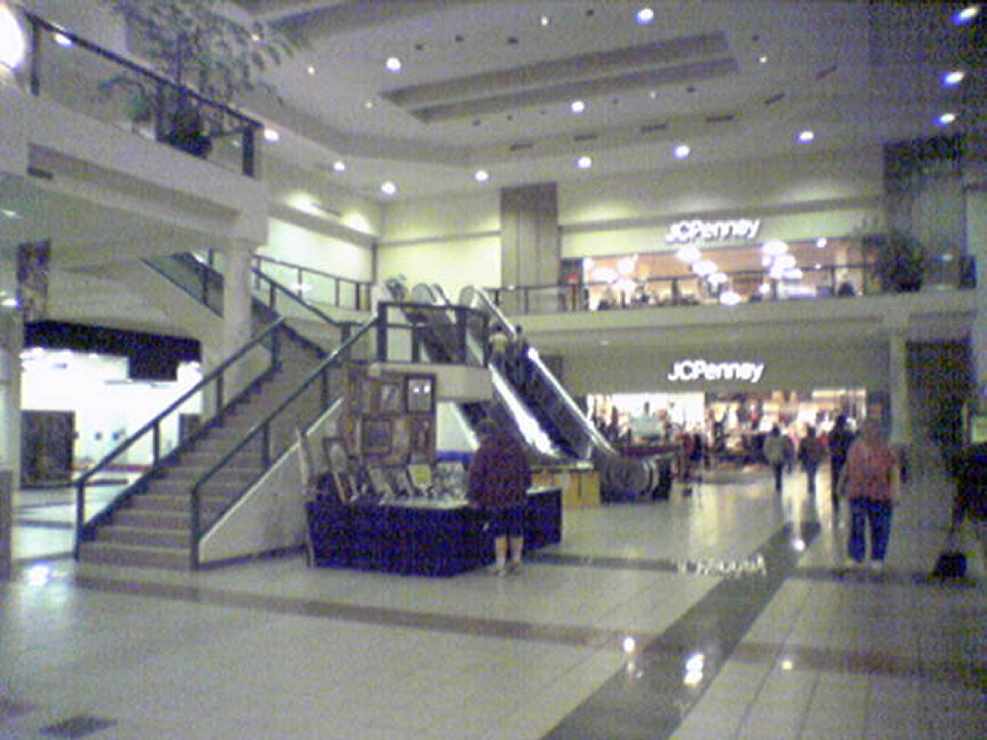 I took this photo on October 14, 2004 at Tanglewood Mall in Roanoke, Virginia. This shows the mall’s JCPenney court, which is at the northeastern end of the mall. JCPenney is gone now, having closed a few years ago, and their building now houses a children’s medical office for Carilion.
