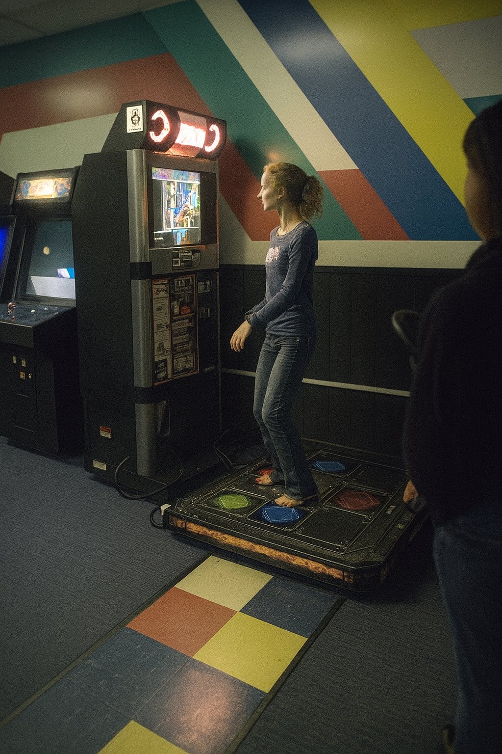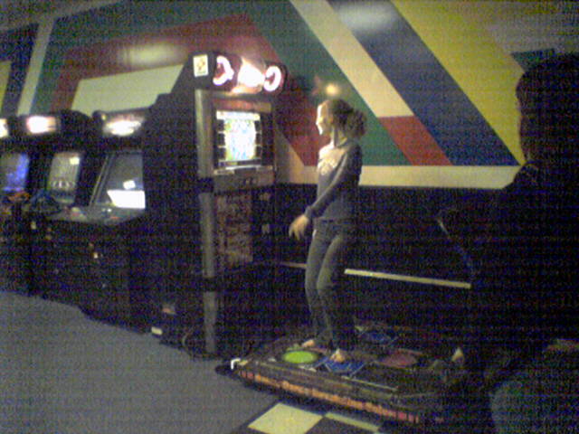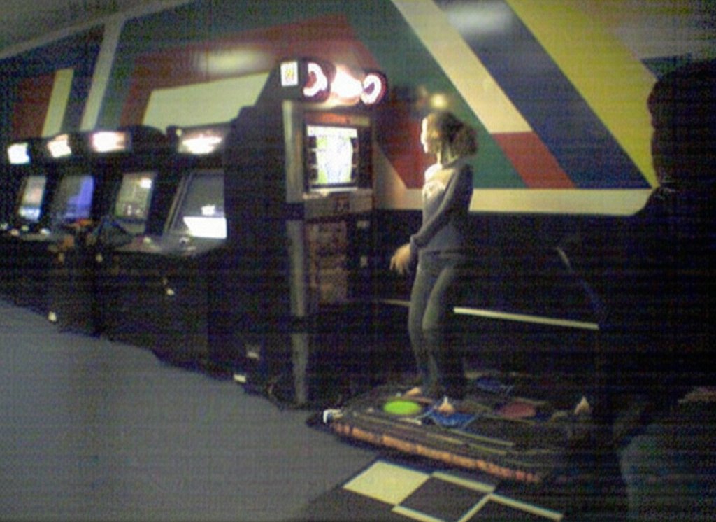This photo was taken at the Video Zone arcade in Staunton Mall on February 20, 2006, and it depicts Jessica Siple playing Dance Dance Revolution. It appeared in the Staunton Mall photo set.