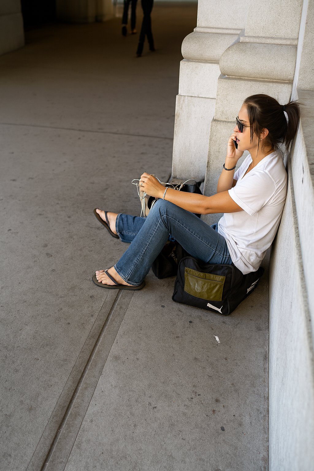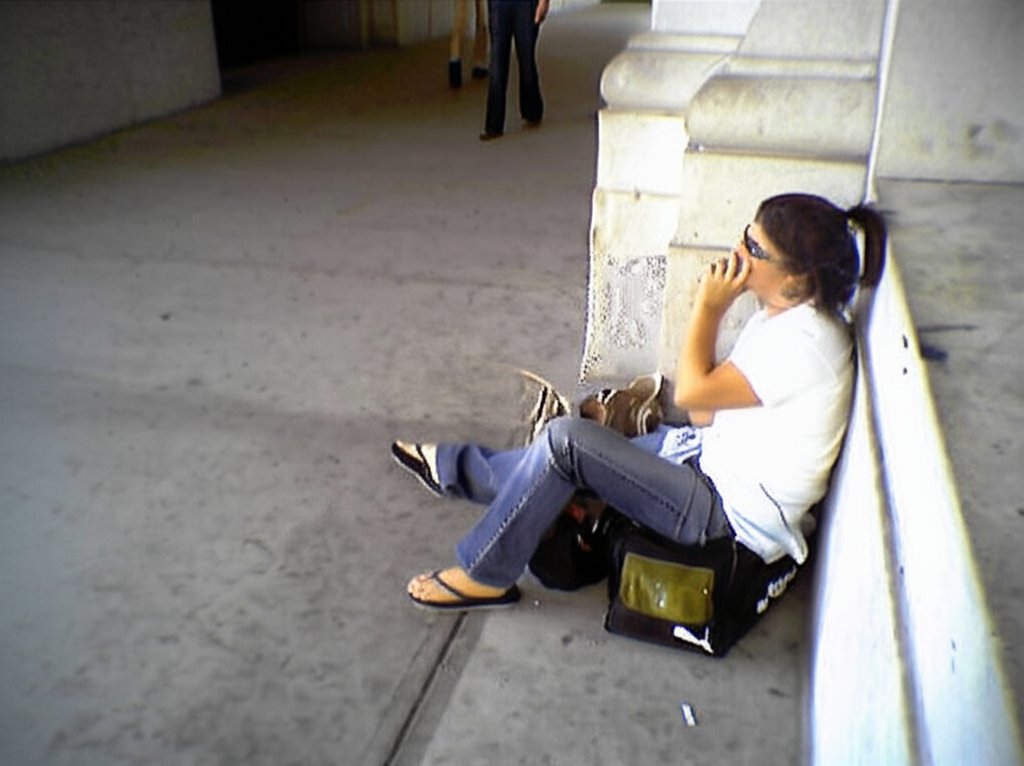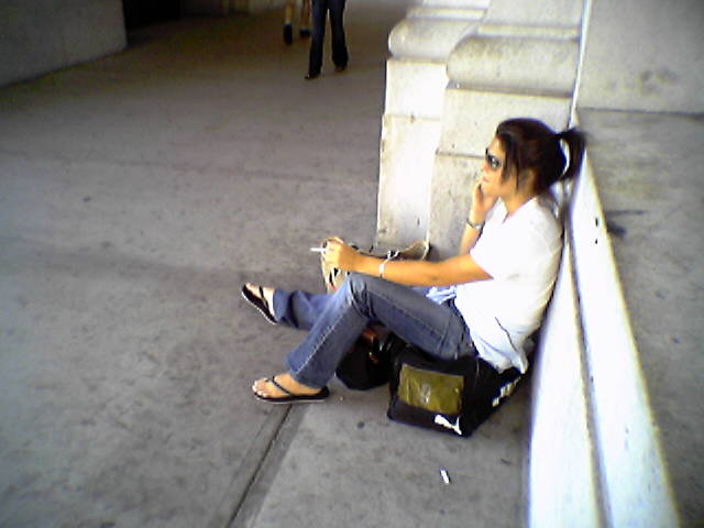I took this photo on May 29, 2004, and it depicts a girl sitting on top of a Puma duffel bag and smoking a cigarette in front of Union Station in DC. It appeared as a photo feature on September 10, 2006. It was considered notable at the time for being the first phone shot to run as a photo feature. Phone photos in general were quite rare as photo features until around the middle of 2012.