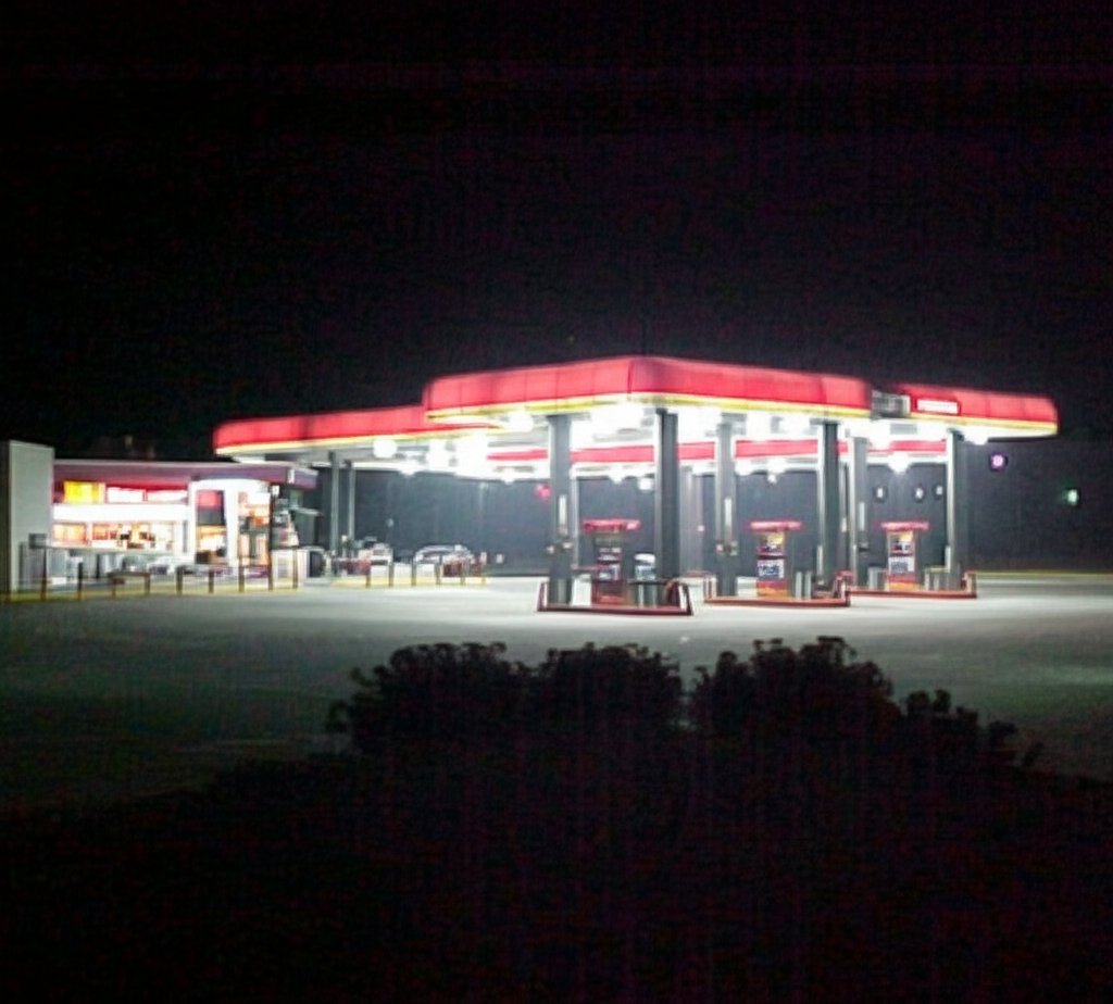 Gemini again produced a reduction in the graininess of the image, though the grain takes a noticeable stripey form. Unlike the Adobe or control images, however, the word “Sheetz” is no longer readable on the canopy, and there is an overall reduction in the sharpness of the image.