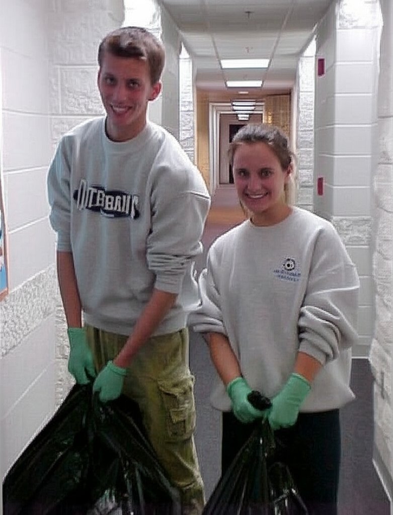 This photo appears in the Junior Year page on College Life, and was captioned, “Will and Clare from Campus Crusade for Christ have done an awesome job through the year with a community service project, taking out people’s trash throughout the building. We are highly appreciative of their efforts.” I hate that caption, because it sounds like something out of a school newsletter. During the time that I was using the original Mavica, I wasn’t particularly skilled about how to light my subjects, so having the people as the darkest thing in the shot was fairly common back then. I got better over the years as my technique improved with time.