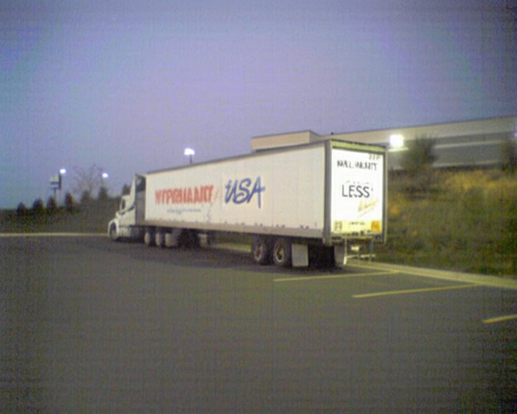 When ChatGPT upscaled the image, it created a very crisp image, as we’ve seen with other images. However, I was surprised that it turned out an image with a lot of noise in it. ChatGPT images are usually noise-free, but the entire image has a bit of graininess to it. As far as the text goes, it changed the font on the Walmart logo and the “HYPERMART” text, and it replaced the star in the Hypermart USA logo with a slash. It also generated gibberish for the tagline under the Hypermart USA logo. I was amused that it just said “LESS!” on the back (insert snarky joke about Walmart’s pay practices here), but to be fair, while the whole slogan was written on the truck, it didn’t come out in the potato quality original. Additionally, while it captured the essence of Walmart’s “Always” wordmark, it mangled up the word, writing “Humre” in the same style.