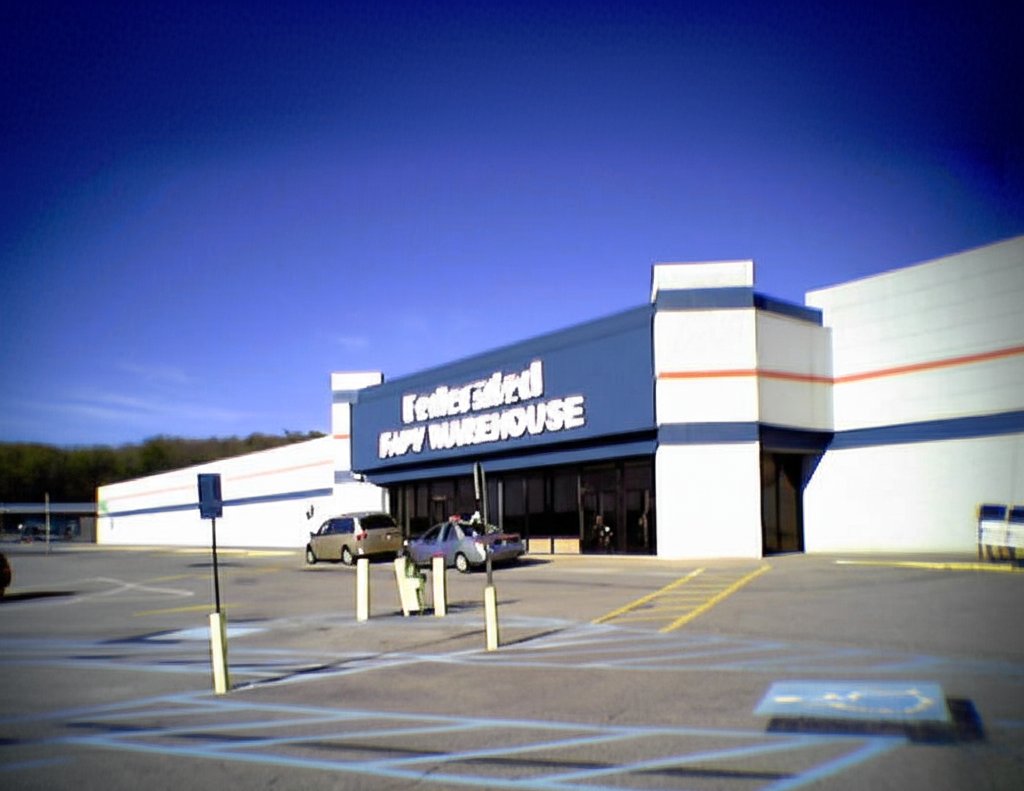 This is the original Walmart store in Staunton, Virginia, which closed in September 1995 when Walmart moved to a new Supercenter facility on Richmond Avenue. After a short stint as Sun Television and Appliances, the building, along with the rest of the shopping center, was bought by Federated Auto Parts, and turned the former Walmart into a warehouse. The photo was taken on April 25, 2005, and originally ran in the “Chucks, Metro, and Home Depot” Journal entry. If you want to see what this place looks like in better quality, I have also photographed it with far superior cameras.