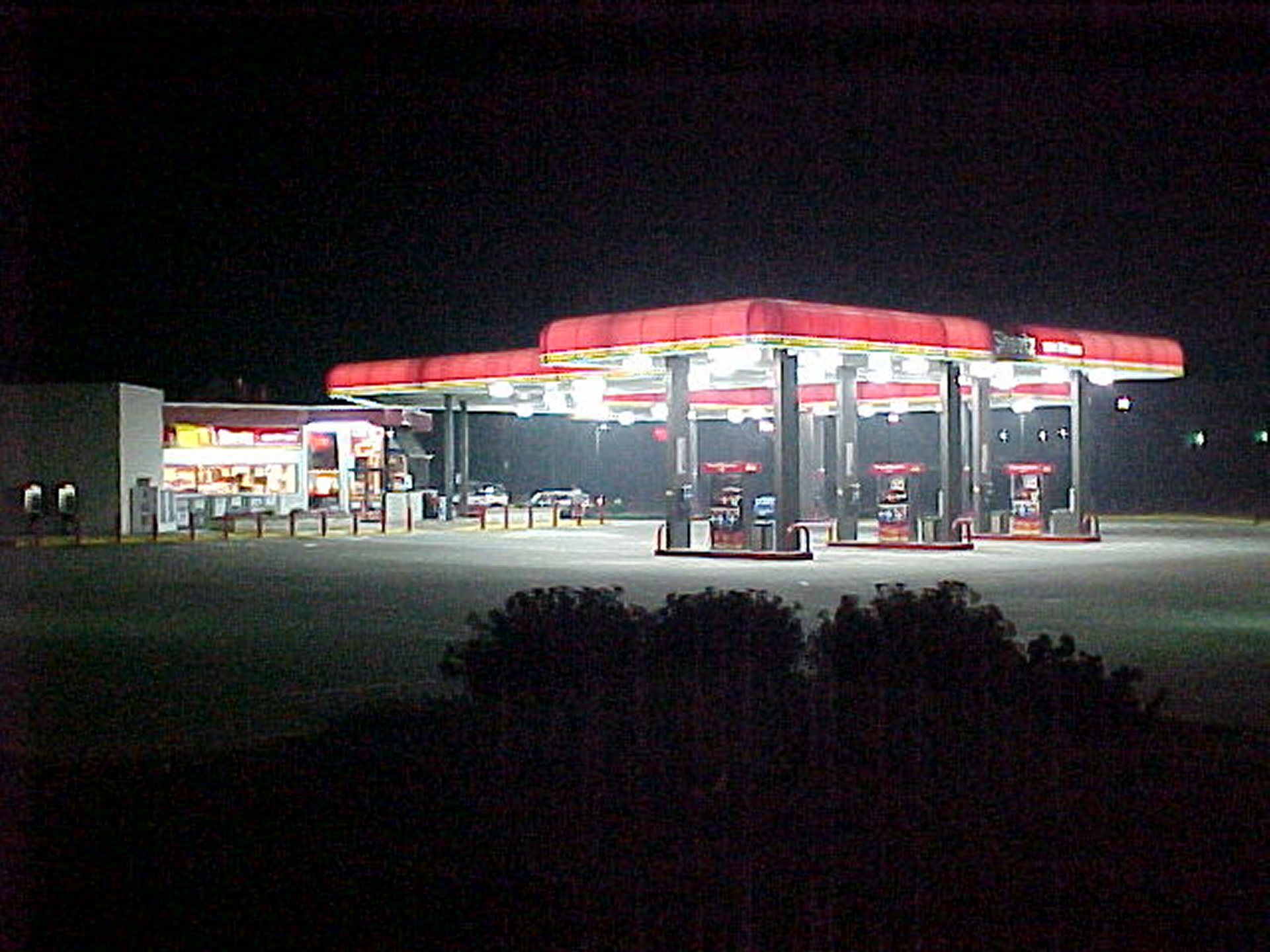 Original and control images of the Sheetz on University Boulevard. I took this with the original Mavica on August 27, 2002. Presumably, I had gotten hungry and decided to walk down to Sheetz from Potomac Hall to get some late night eats. It was in a grouping of other miscellaneous photos from that evening around Potomac Hall as well as on my walk down to Sheetz and back, so apparently, I was just messing around with the camera that night as I went about things. I also got a photo of the price sign, which revealed that regular unleaded was $1.25 per gallon that evening ($2.23 per gallon when adjusted for inflation).