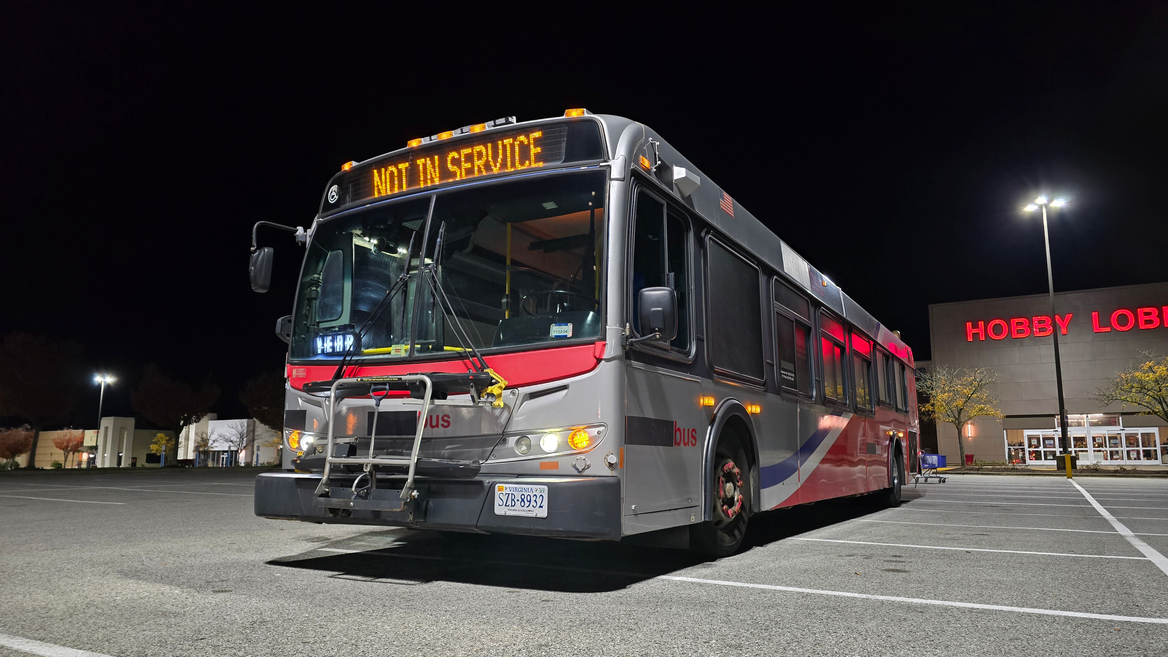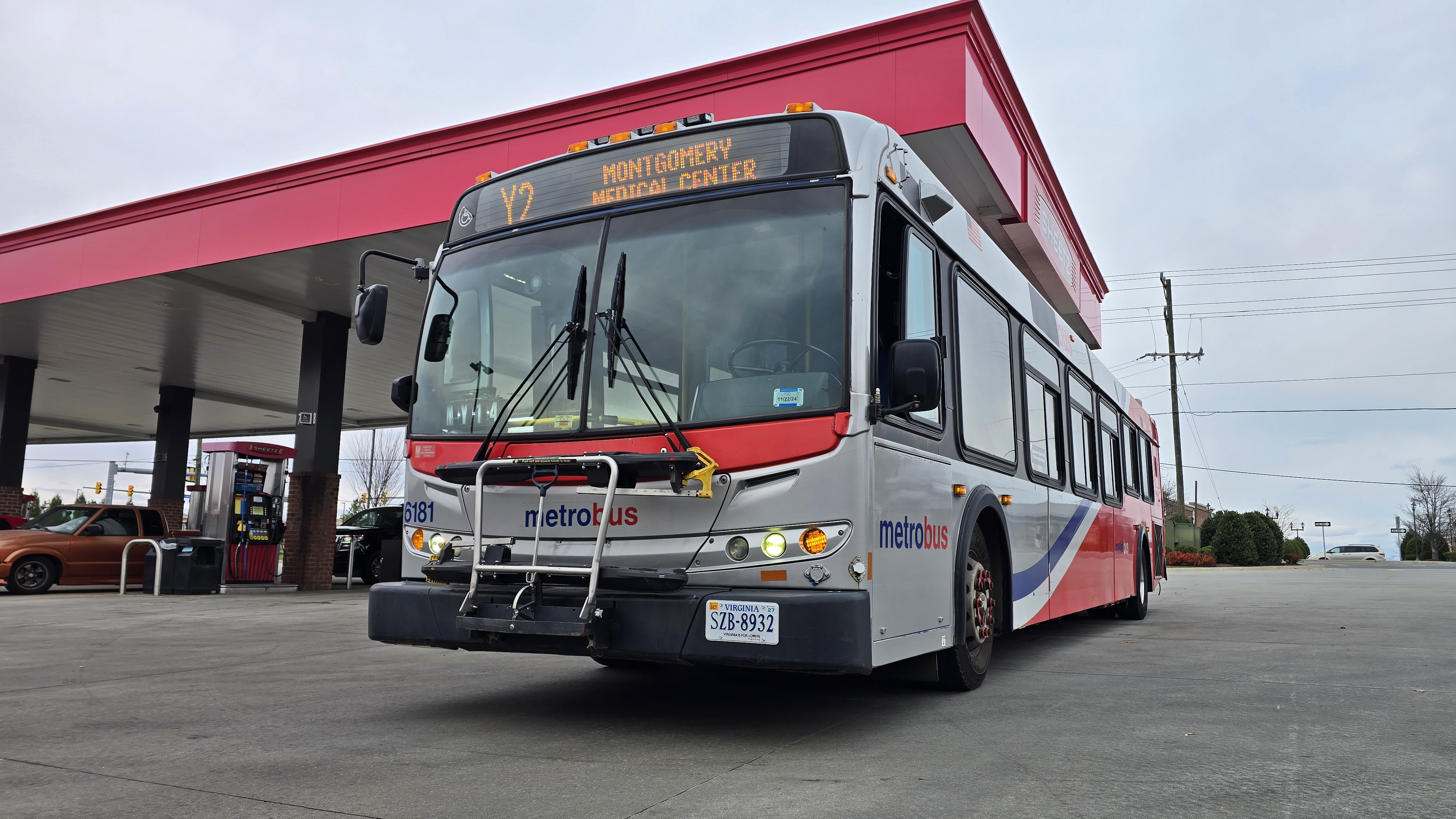 This year, I spent my Thanksgiving on the road, volunteering my time and money for Commonwealth Coach & Trolley, a Roanoke-based museum that owns a collection of vintage vehicles, largely transit buses.  Along with Elyse, I serve on the museum’s board of directors.  On this particular occasion, I was transporting a recent acquisition down to its permanent home in Roanoke.  This was a former WMATA unit, bus 6181, a 2006 New Flyer D40LFR, which Metro donated to the museum in February of this year.  After the museum received the bus (I had no involvement in the donation process), I helped coordinate and fund a repair on a leaking coolant pipe, and I also took care of titling and registration.  Once I got the bus registered, I took it on a quick test drive, running it up Route 1 from the parking lot in College Park where the museum had been keeping it up to Laurel, just to make sure that I was confident in its performance: