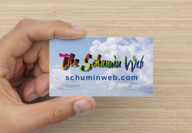 The endgame here is to have this portal site serve as a landing page for a future business card run. I would put a URL on the card along with a QR code, which would land people at that portal site, and from there, they could go to whichever property that they need to go. Running business cards is not unheard of for me, as I did it once before, back in March 2014. At that time, I was out of work (though I was working on laying the groundwork to begin my career in public transportation), and I was trying to make Schumin Web into more of a business than it was at the time in order to try to monetize the content in new ways. The way that I figured, no one was likely to license my various opinions about things, but the photographic content had potential for use in other contexts, and so that’s what I focused on. At the time, The Schumin Web was my only brand, and so that’s how I marketed it. The front of the business card had the logo on a cloud background: